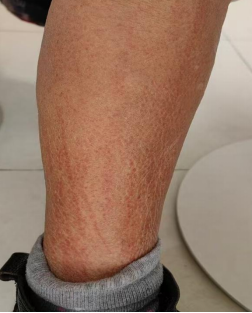 近日,家住湖北襄阳的李女士(化名)发现小腿两侧突然出现许多红色条状斑痕,像被“鞭打”过一样,且瘙痒难耐,于是前往医院。